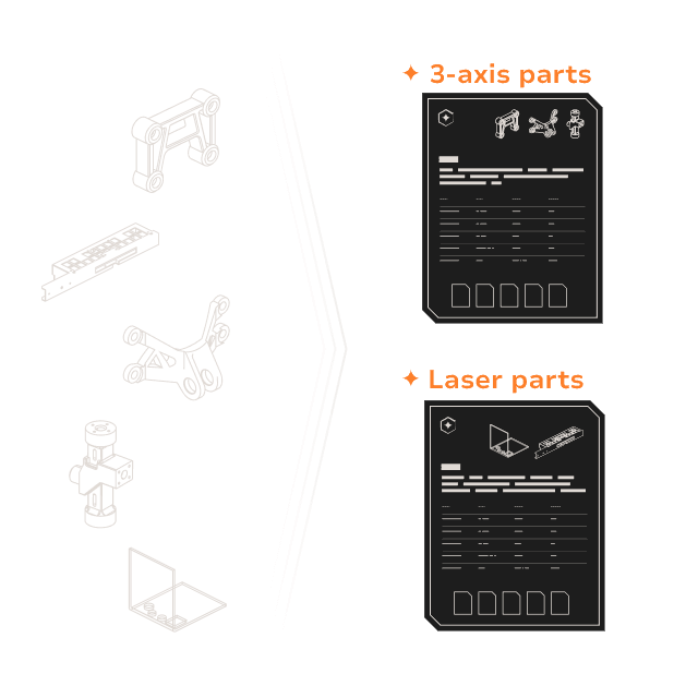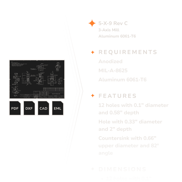 Our deep-search technology scans PDF prints and CAD metadata for keywords. Instantly surface and categorize GD&T, materials, finishes, and data control requirements buried deep within your files.